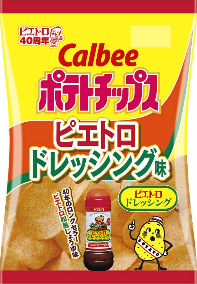 ピエトロとカルビーはピエトロのドレッシングやパスタソースを再現したポテトチップス4品を、期間限定で販売する。先行して3月9日に全国のコンビニエンスストアで発売する。ピエトロが菓子メーカーと共同で商品開発するのは初めて。創業40周年を盛り上げ、新たな客層の開拓にもつなげる。