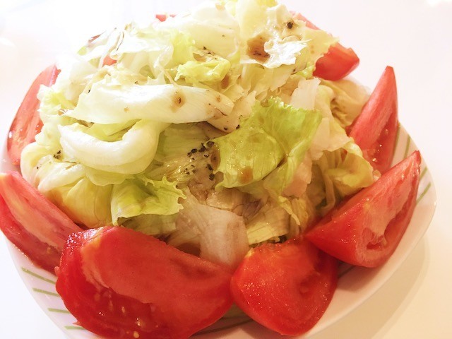 4.クシャッと柔らかくなって、やさしい雰囲気に仕上がりました。うんうん、ちゃんとドレッシングが絡んでいておいしい〜♪