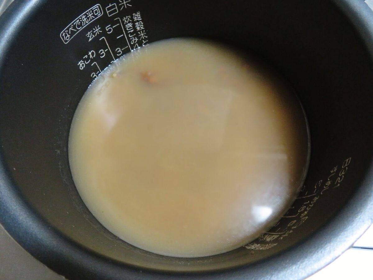 炊きあがったら、炊飯器の蓋を開けて5分間水分を蒸発させます。しゃもじでかき混ぜたくなる気持ちをぐっと我慢!