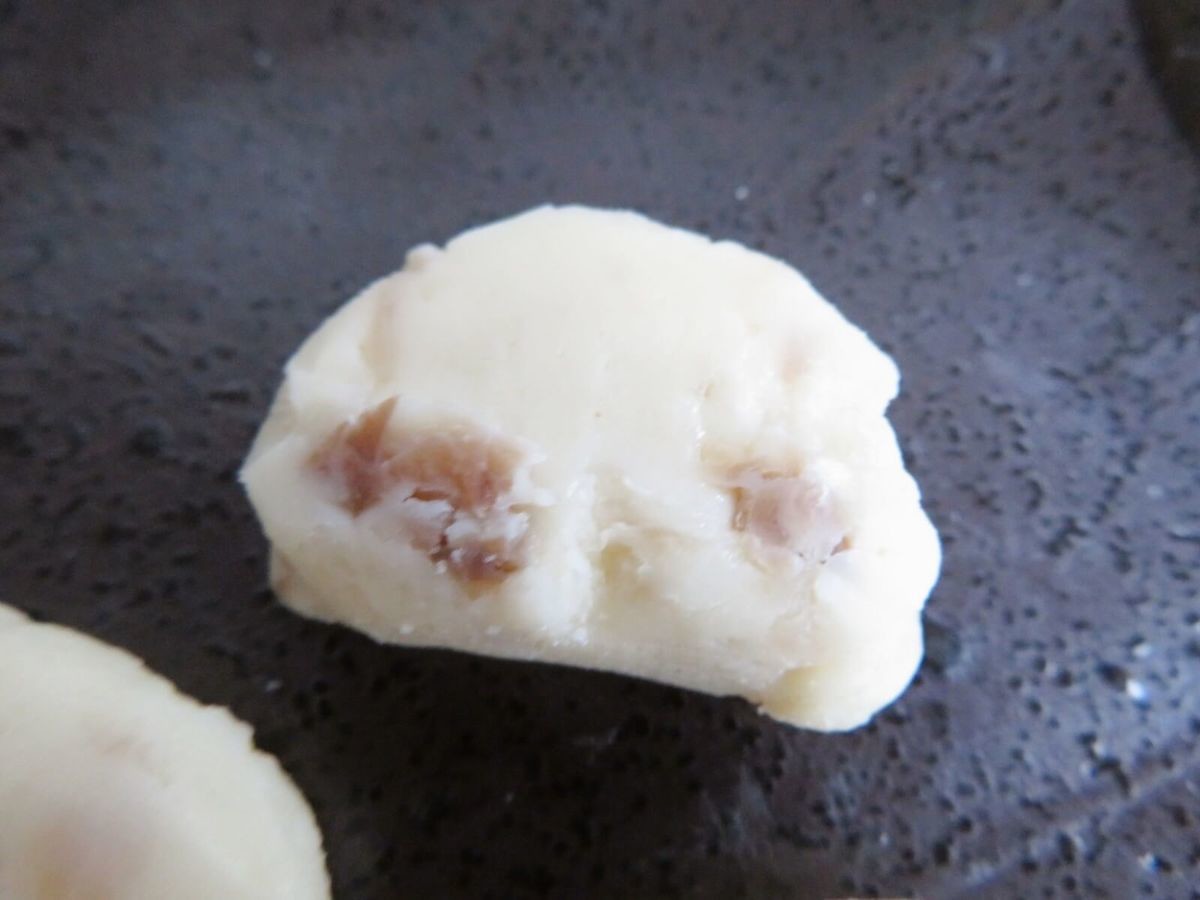 クリーミーでクセのないプロセスチーズは、とろけそうなほど滑らかな舌触り。その中に入ったいぶりがっこが、シャクシャクとした歯触りでいいアクセントに!